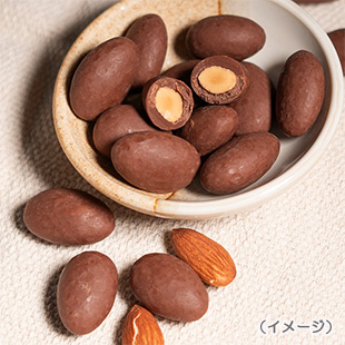 甘さ控えめで、カカオのコクも楽しめるビターなミルクチョコレートは香ばしいアーモンドとの相性も抜群です。