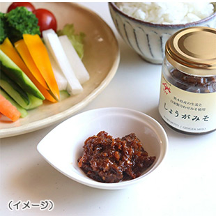 熊本の大地と水で育ったしょうがを使用し、阿蘇産大豆を使って仕込んだ添加物不使用の合わせみそとともにじっくりと炊き上げたおかずみそです。