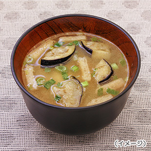 揚げ茄子のおみそ汁に10種類の野菜の旨みがプラスされた、リッチでまろやかな味のおみそ汁です。