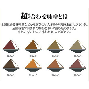 全国から集めた8種類の味噌を独自ブレンドした「超合わせ味噌」を使った4種類のフリーズドライおみそ汁が8食セットになりました。