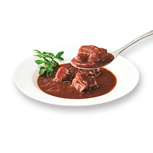 直火焼製法のルーを使用した、濃厚で味わい深いレトルトタイプのビーフシチューです。