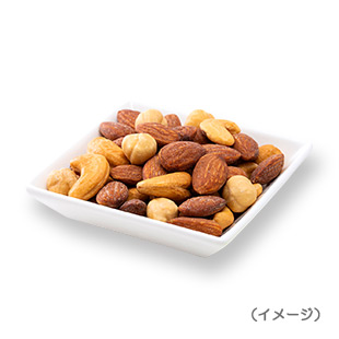 塩アーモンド・食塩不使用ディープローストカシューナッツ・塩ヘーゼルナッツをミックスしたうす塩味のおいしさです。