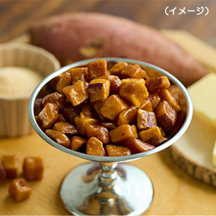 九州産のさつまいもを、国産きび砂糖でつくったキャラメルでコーティングしたやさしい甘さのお菓子です。