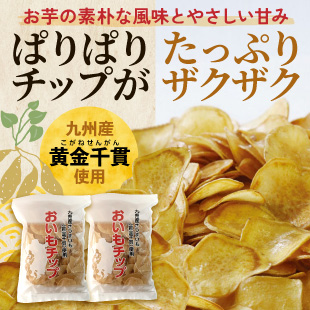 九州産のさつまいも、黄金千貫をカリッと揚げたおいもチップ。