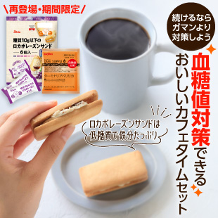 <機能性表示食品>のコーヒー「カフェサプリ ターミナリアベリリカ」と糖質10g以下の焼菓子「ロカボ レーズンサンド」とのお得な\期間限定セット/です。