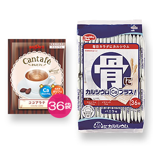栄養機能食品のココアラテと不足しがちな栄養素をおいしく補給できるおかしとのセット