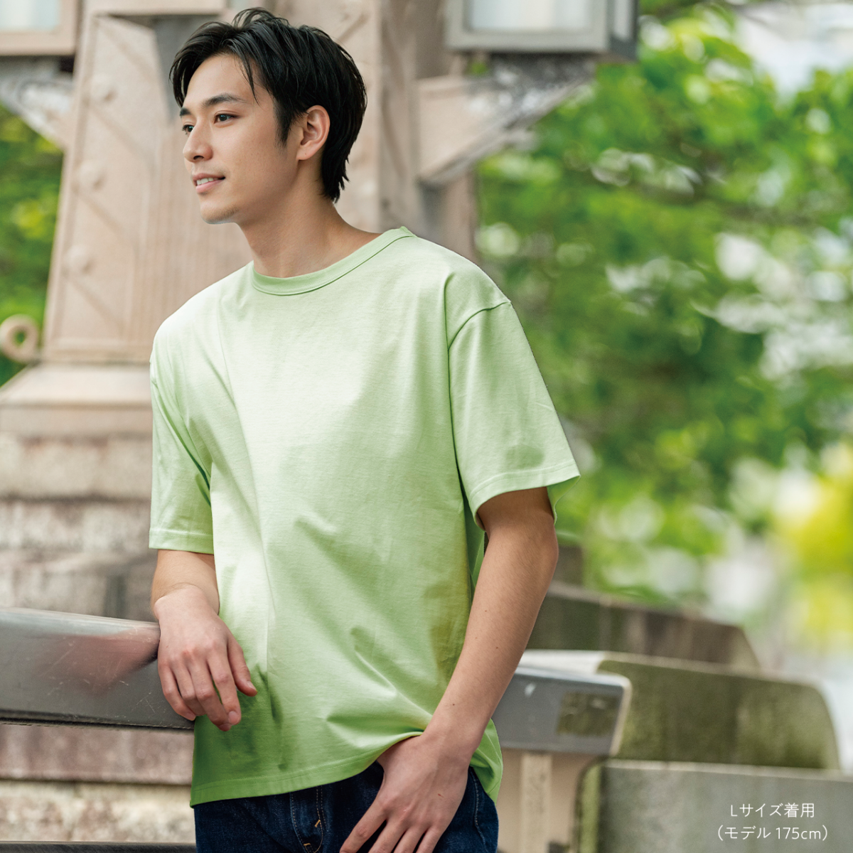 綿100%の中でも程良い厚みで糸のケバや毛玉ができにくい光沢感のある生地は、肌触りが良くクセになる着心地です。