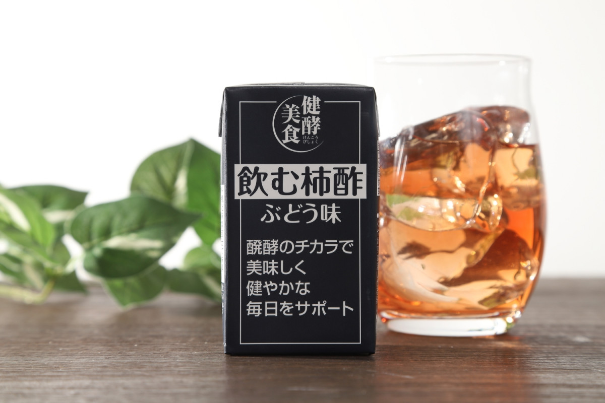 庄内柿からつくった柿酢をたっぷり配合し、お酢好きも満足の飲みごたえ。ぶどうのやさしい甘みが酸味をまろやかに包み、さっぱりとした後味に。毎日続けたくなる、体にやさしい健康ドリンクです。持ち運びに便利な紙パックタイプで、どこでも気軽に美味しい柿酢を楽しめます。