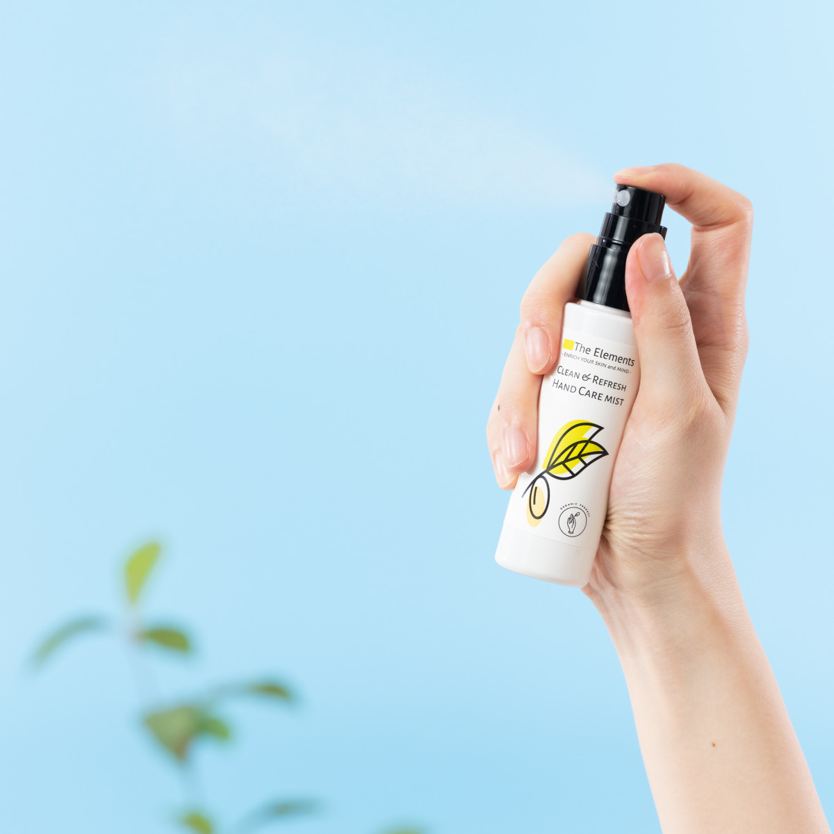 オーガニック精油が織りなすハーバルグリーンの香りに包まれ、手肌を守るハンドケアミスト