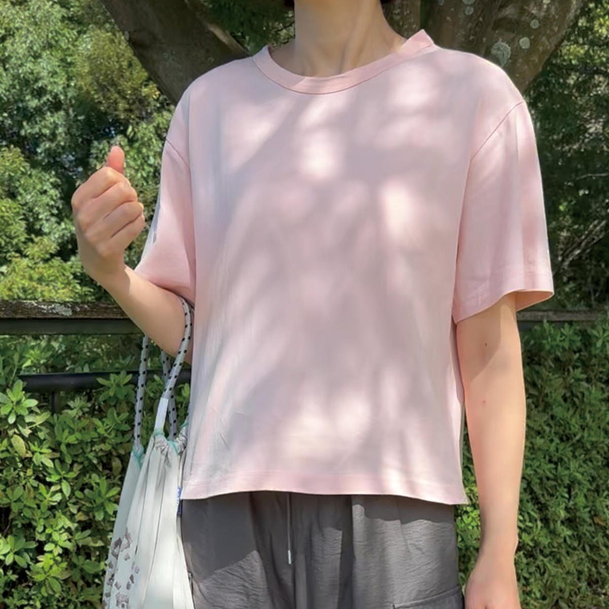 Tシャツは、差し色コーディネートに適したシェルピンクでM-Shortサイズ。