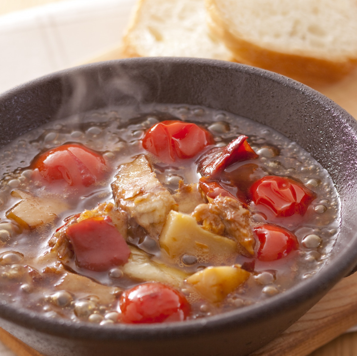 カツオ(太平洋)、菜種油、たけのこ水煮、グリル赤ピーマン、野菜(玉ねぎ、にんにく)、オリーブ油、食塩、赤唐辛子、香辛料、柚子皮フレーク