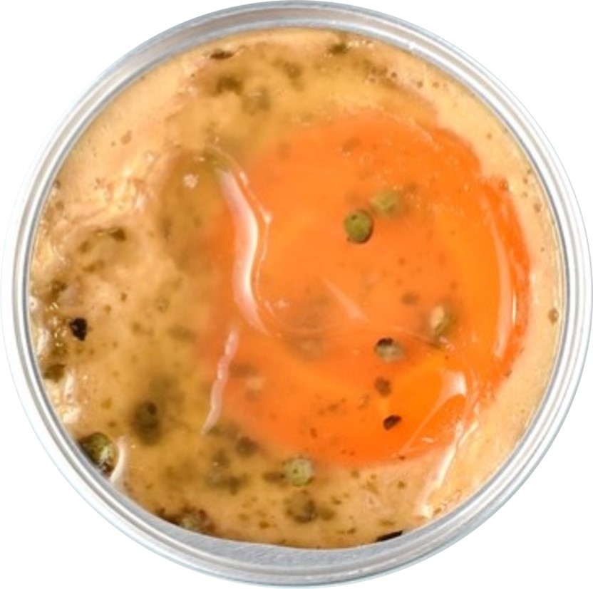 開缶時には、ジュレ、スライスニンジン、パテの3層構造が見た目の楽しさを醸し出します。